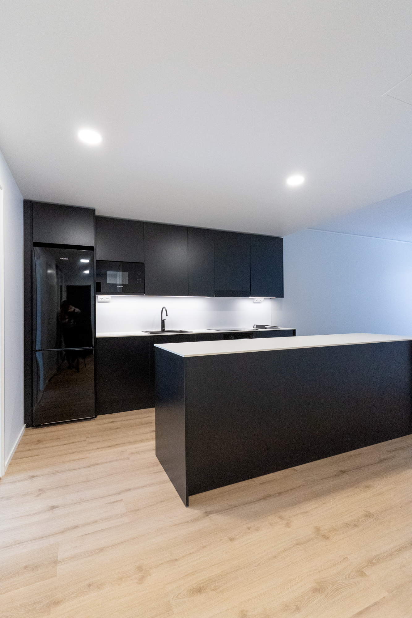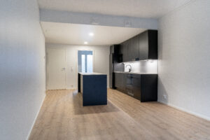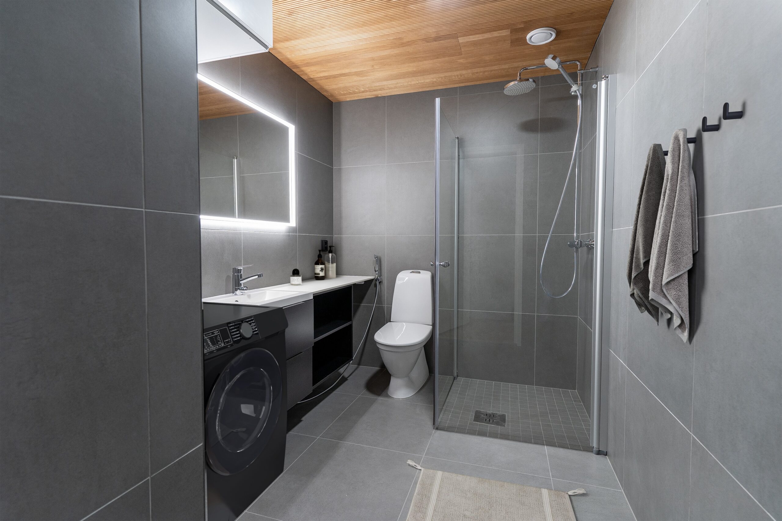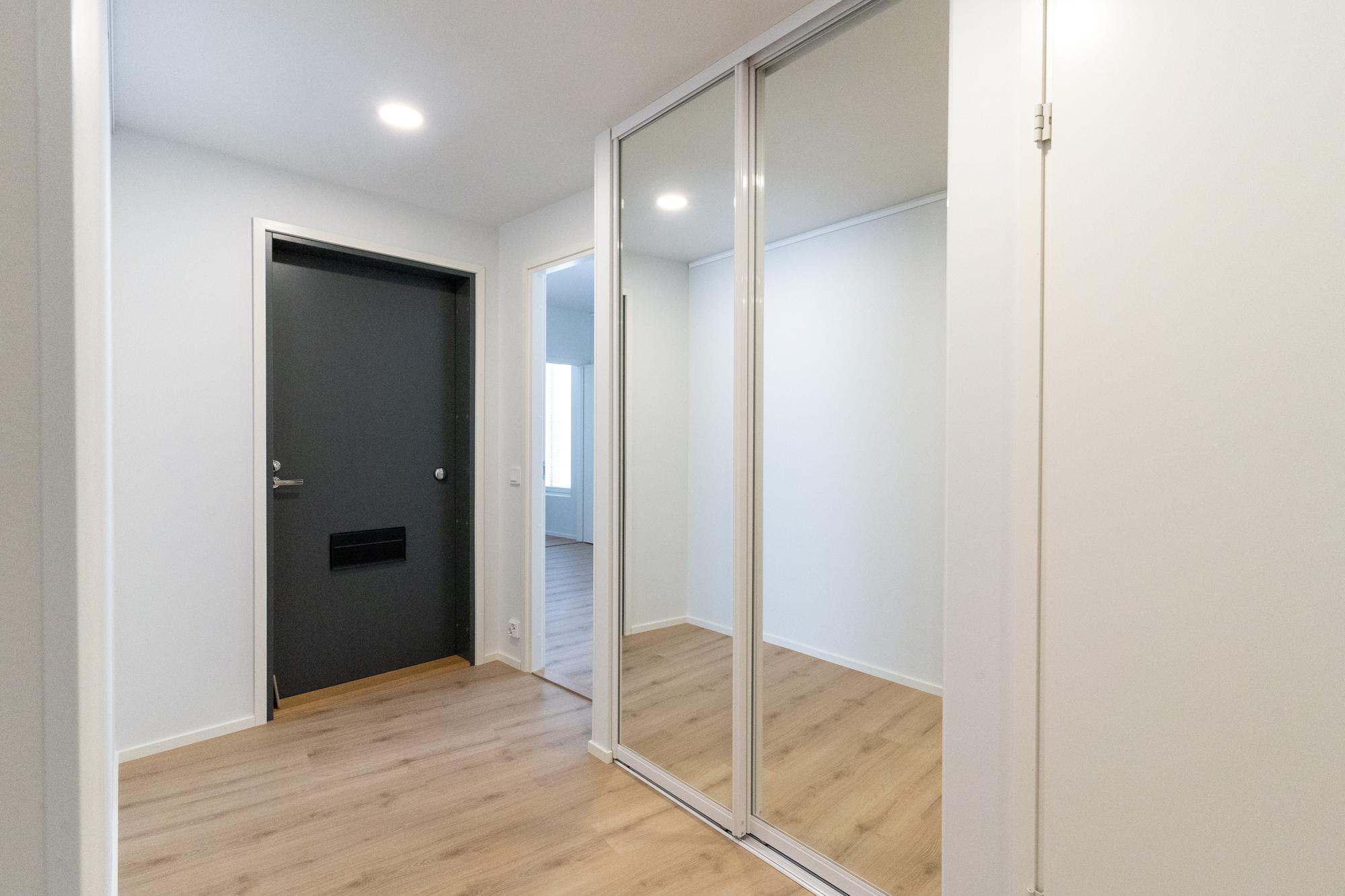 Materiaalivalinnoissa olemme halunneet korostaa tyylikkyyttä ja aikaa kestäviä valintoja. Asuntojen eteisestä löytyy peililiukuovikomerot ja asuintilojen lattiamateriaalina on käytetty kulutusta kestävää vinyylilankkua. Pesuhuoneiden laatat ovat reilun kokoista 60×60 cm laattaa ja katseenvangitsijana löytyy led valoin varusteltu peili. Jokaisessa kylpyhuoneessa on tilavaraus pyykinpesukoneelle ja kuivausrummulle.